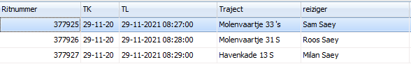 Het komt voor dat een reiziger meerdere versies heeft. In dit voorbeeld kijken we naar een reiziger welke 3 versies heeft. Versie 1 is momenteel actief (12-11-2021), versie 2 wordt pas later geactiveerd (22-11-2021) en versie 3 is de laatst bewerkte versie van deze reiziger (29-11-2021).